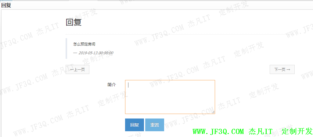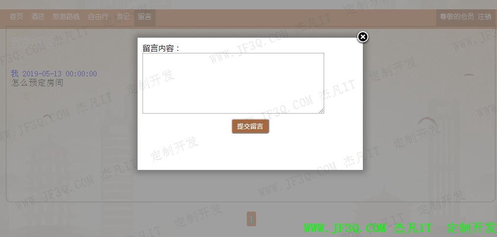 用户留言主要是对用户的一些疑惑或者建议进行答疑解惑,类似于客服功能,后台管理员回复后会在用户的留言页面进行显示。