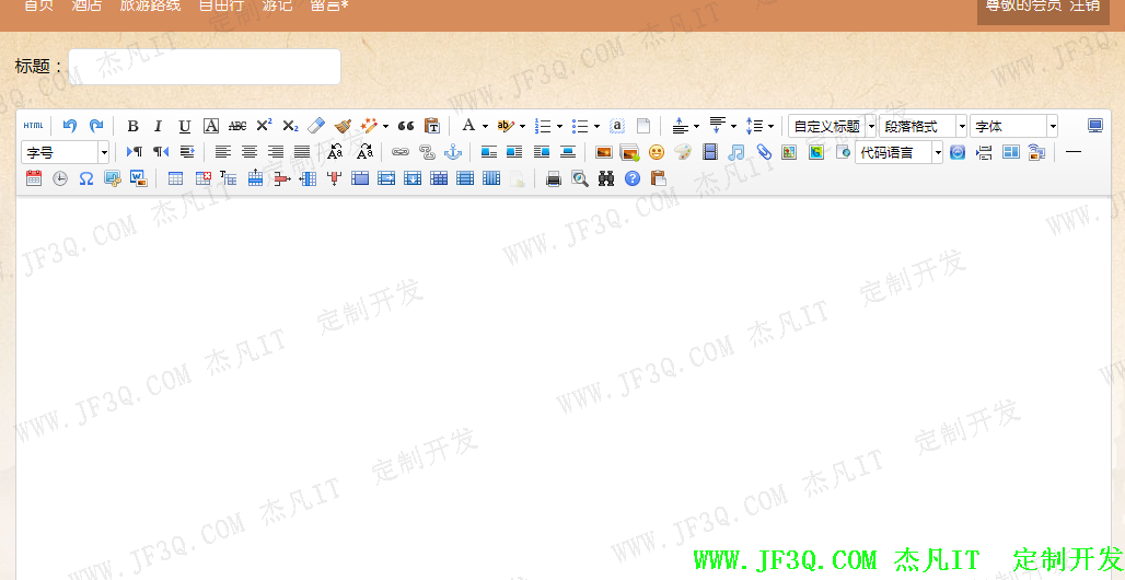 此处主要是用了ueditor编辑器来实现的,因为游记不仅仅是文字组成的,他还包括图片,准确的来说是图文混版,普通的textarea文本框已经不能满足这个需求了,所以采用了超文本框编辑器UEditor,它是由百度WEB前端研发部开发的所见即所得的开源富文本编辑器,具有轻量、可定制、用户体验优秀等特点。开源基于BSD协议,所有源代码在协议允许范围内可自由修改和使用。百度UEditor的推出,可以帮助不少网站开发者在开发富文本编辑器所遇到的难题,节约开发者因开发富文本编辑器所需要的大量时间,有效降低了开发成本。