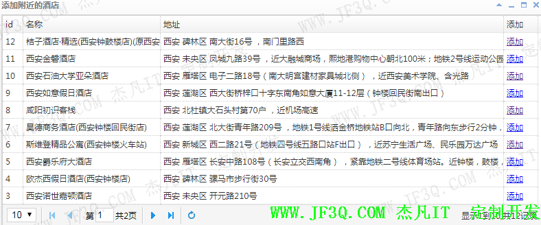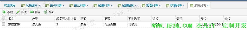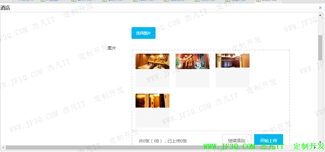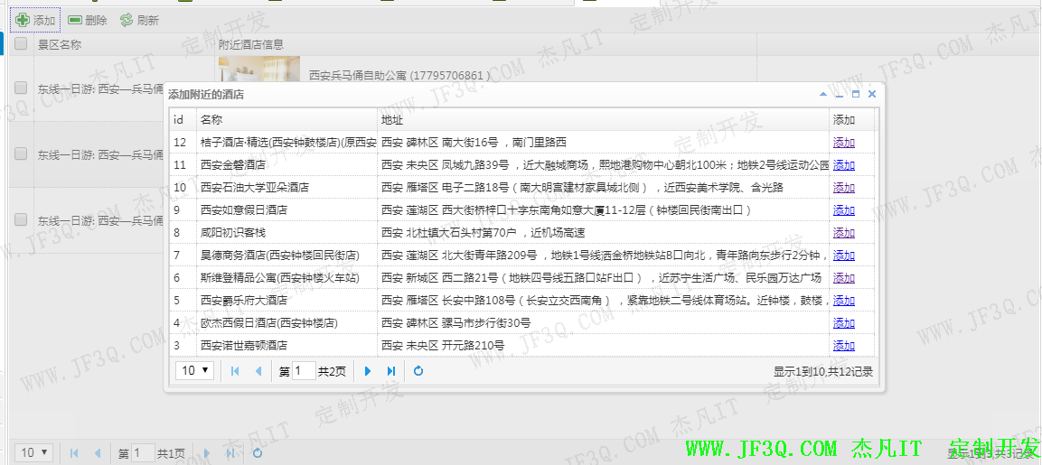 此处采用弹框的形式添加富景酒店信息,方便管理员操作。如下图所示: