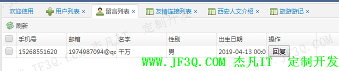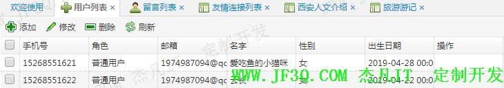 基本管理包括用户列表,用户留言和友情链接功能。用户列表主要是对本网站的注册用户进行展示展示,编辑,添加,删除等操作。