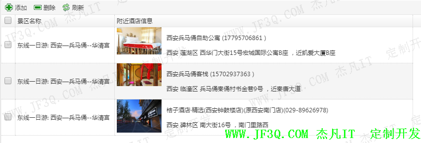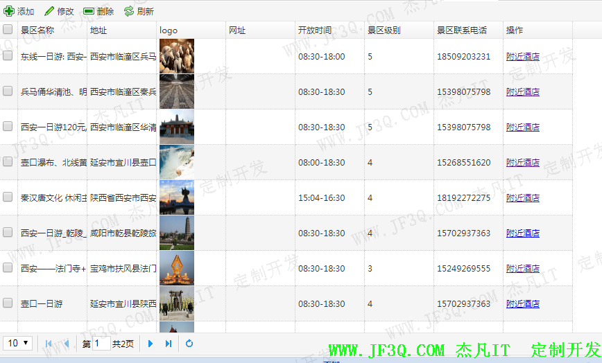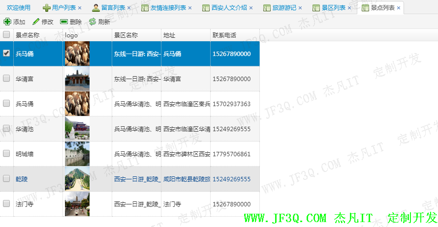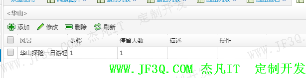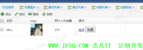 景点列表是构成景区列表的小单元,是通过景区列表的自查询来实现的,他主要针是某一景区的具体景点进行添加,编辑和删除等操作。