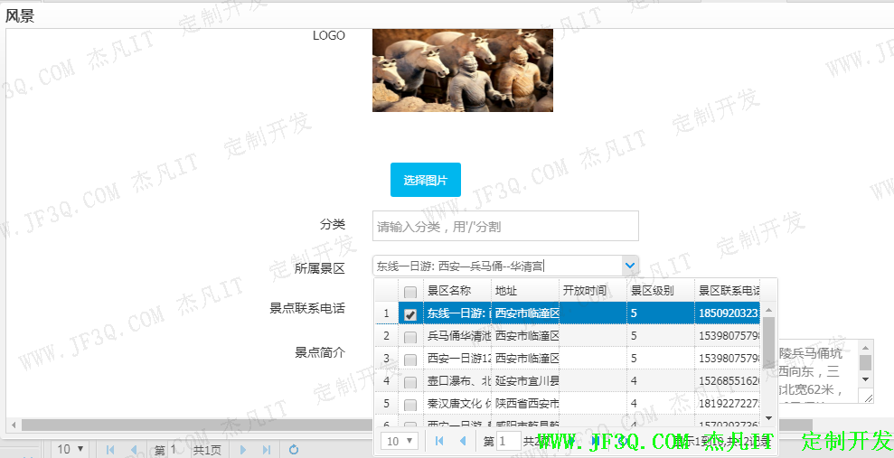景点编辑或者添加的时候,需要选择对应的的景区数据,如下图: