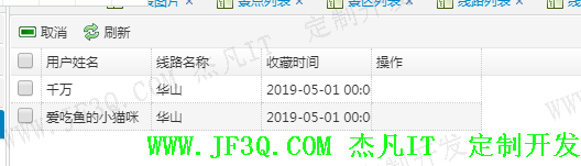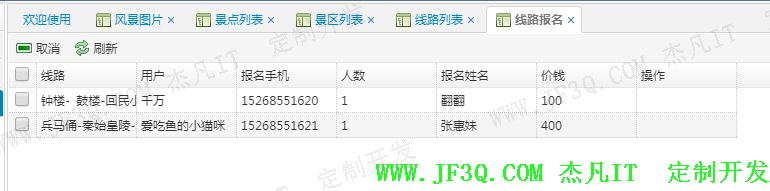 旅游路线管理包括路线列表和路线报名两个模块。旅游路线主要是有管理员发起的个人组织旅游活动,全部自费,时间自定,有意向者可以通过网站发起报名。