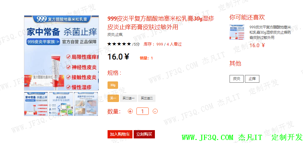 详情页可以加入购物车和直接购买,还可以选择不同的规格进行购买,如下图: