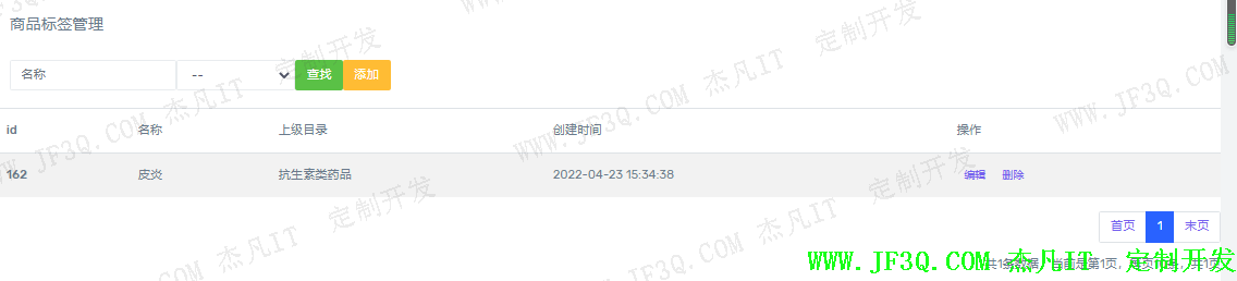 为了方便用户快速查询药品,进行标签管理,一页10条,还可以根据标签名称和分类搜索,主要使用AdminSpTagController实现,方法如下: