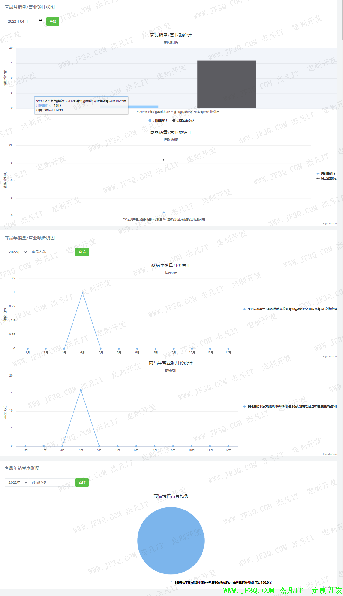 统计图表如下:主要是月统计,年统计以及每月销量营业额统计,使用highchart.js实现。