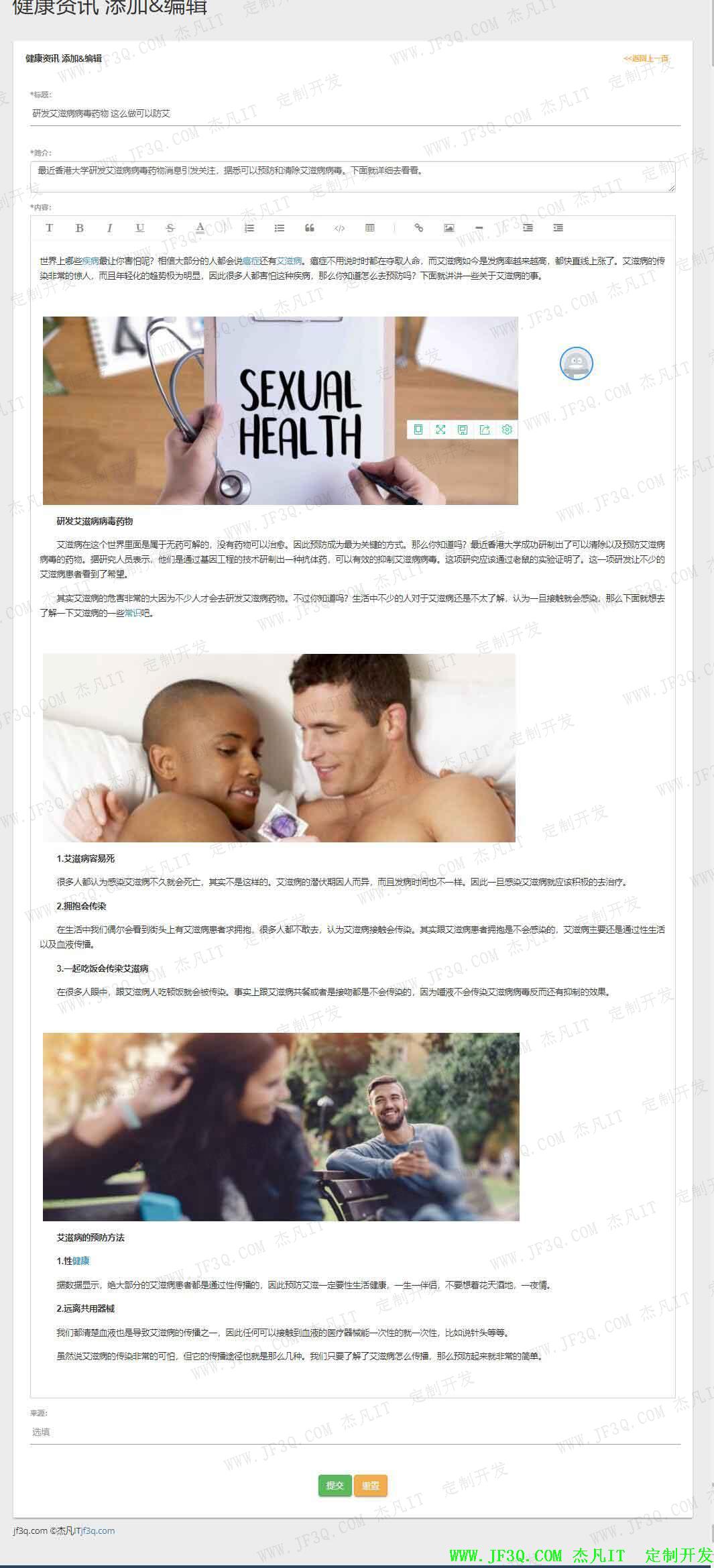 用户登陆系统后进入到健康资讯浏览界面,通过查询健康资讯获得健康资讯信息