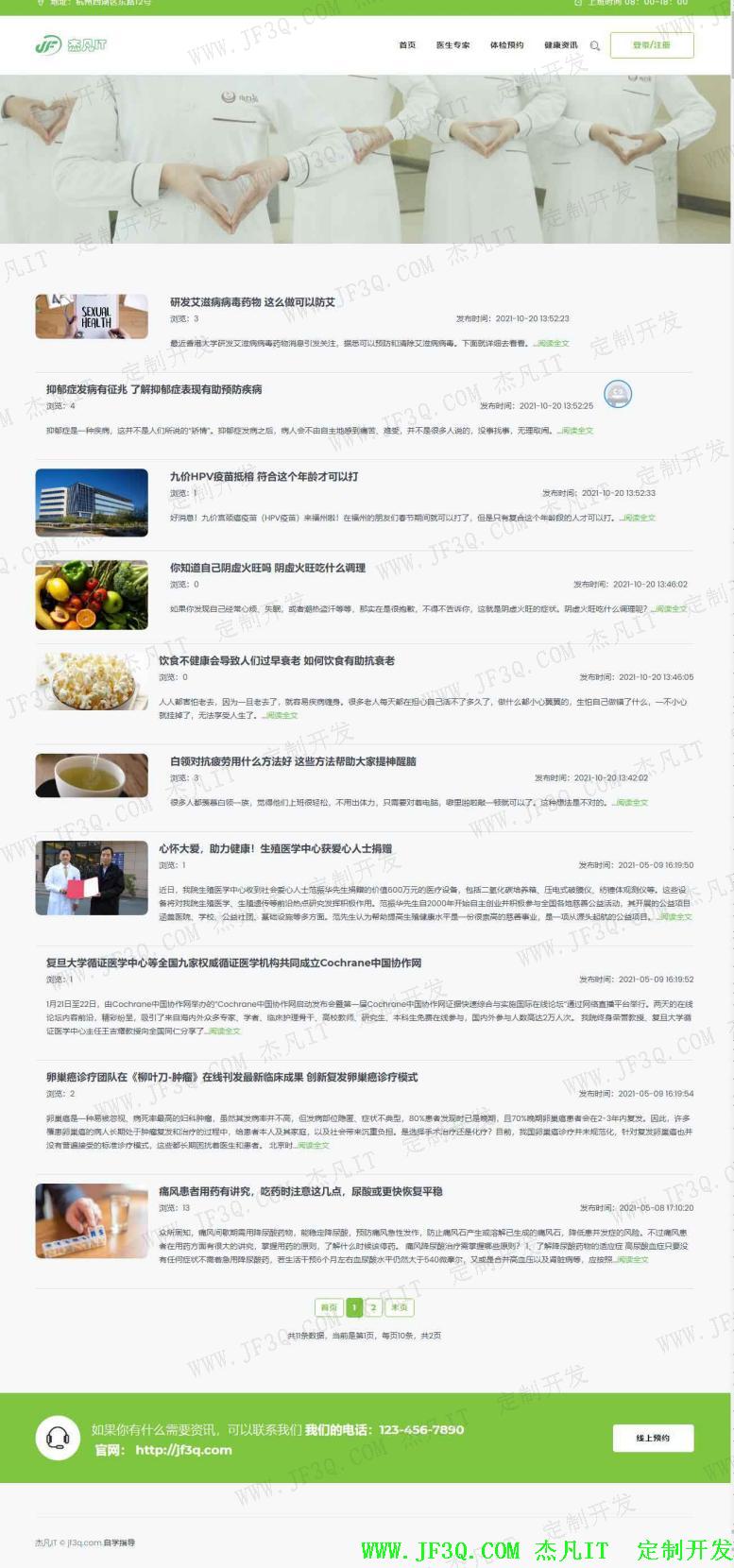 Personal health monitoring management platform to achieve user registration, login, maintenance, health information browsing, appointment of doctors, personal health check-up, view medical reports, personal health data upload and other functions. This platform not only facilitates users to make online appointment registration check-ups, but also saves a lot of time. At the same time, the efficiency of examining doctors is improved, so that the hospital's work can be carried out in a more orderly manner, greatly saving human and material resources.