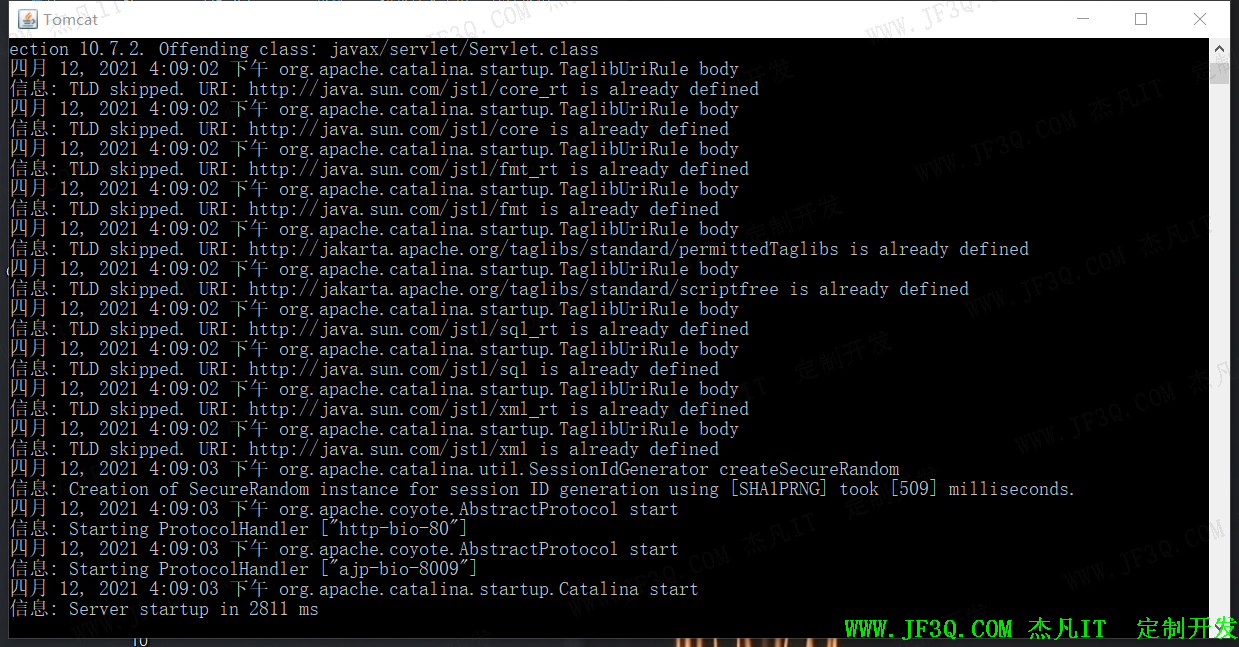 (1)JDK安装:打开安装包,根据提示安装即可。安装完成之后需要配置环境变量。在控制台输入java -version,出现如图34的信息则表示成功安装。