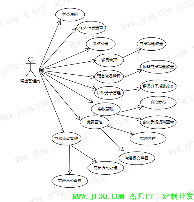 (1)党员管理:普通管理员对党员进行增删改查。