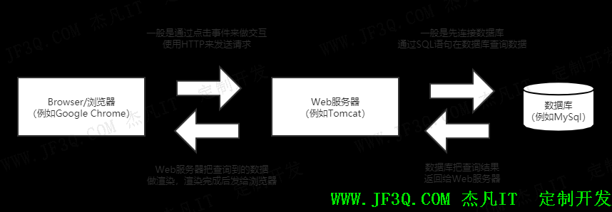 B/S(Browser/Server)结构是真正的三层结构,它围绕着Web数据库作为中心,用HTTP协议来作为传输手段,客户端通过浏览器(Browser)访问Web服务器(例如本项目的Tomcat服务器),通过服务器去连接后端的数据库,通过SQL语句去数据库查询数据,然后返回给Web服务器,然后服务器将数据渲染展示给客户端。B/S架构本文简洁的分为三层来理解。
