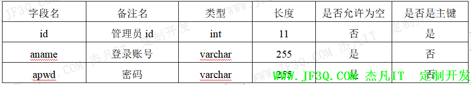 管理员表(Admin):存放管理员的基本信息。见表4-9管理员表(Admin)。