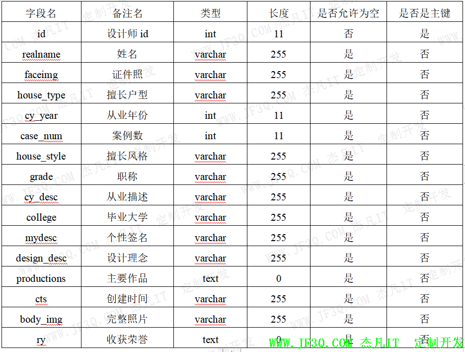 设计师表(Designer):存放设计师的基本信息。见表4-4设计师表(Designer)。