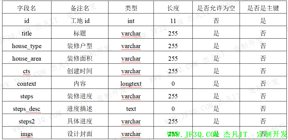 工地表(Site):存放工地基本的基本信息。见表4-5工地表(Site)。
