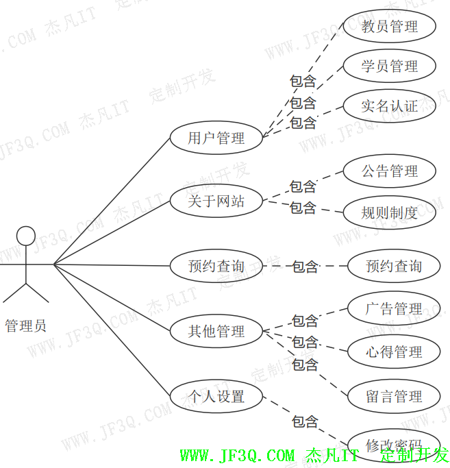 (2)管理员可以登录后台管理系统,负责管理整个网站,包括对用户信息管理,例如对教员和学员的信息进行修改;对预约信息管理,可以查看筛选预约详情;对网站信息管理,例如可以发布网站公告;对个人信息管理,例如修改管理员密码。