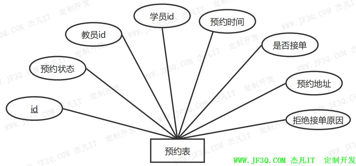 (4)预约表实体E-R图如图4.4所示,主键是id编号,其他还有预约状态,预约时间,预约地址等属性。