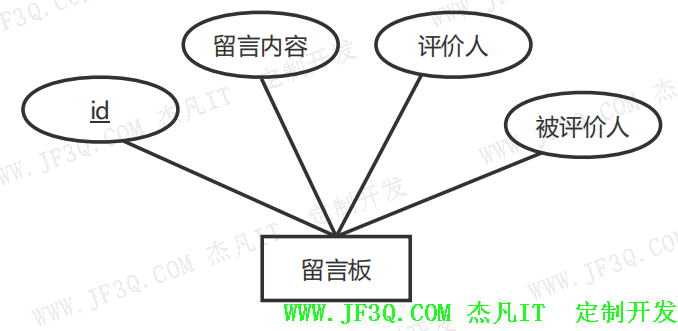 (5)留言板实体图E-R如图4.5所示,主键是留言板id编号,其他还有留言内容,评价人,被评价人等属性。