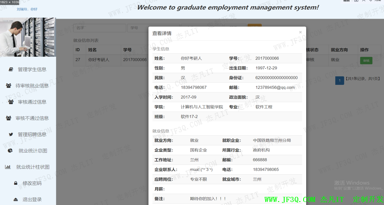 (2)毕业生子系统系统界面及功能