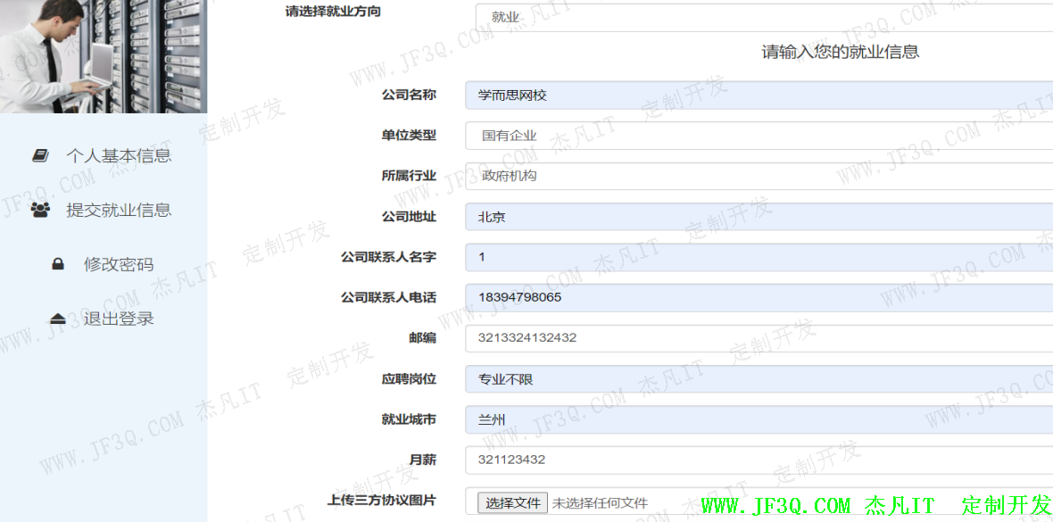 ② 实现毕业生就业信息提交和单位招聘信息的发布以及公告信息的发布等;