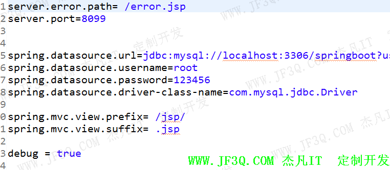 配置端口,访问路径,数据库连接,错误异常页面等,如下: