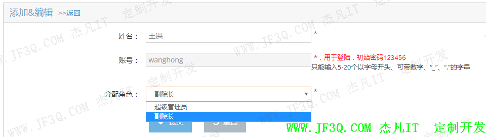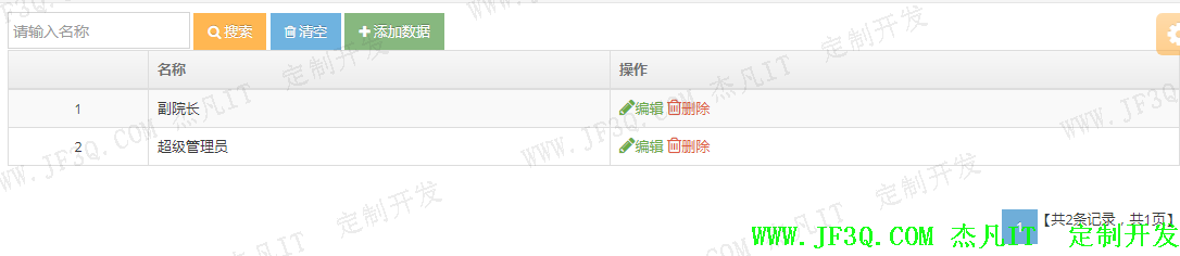 角色可分为超级管理员(院长),二级管理员(副院长或者主任),任课教师。主要实现角色的查询,分页,添加,编辑,修改,按角色名称筛选查询功能。部分实现效果图如下: