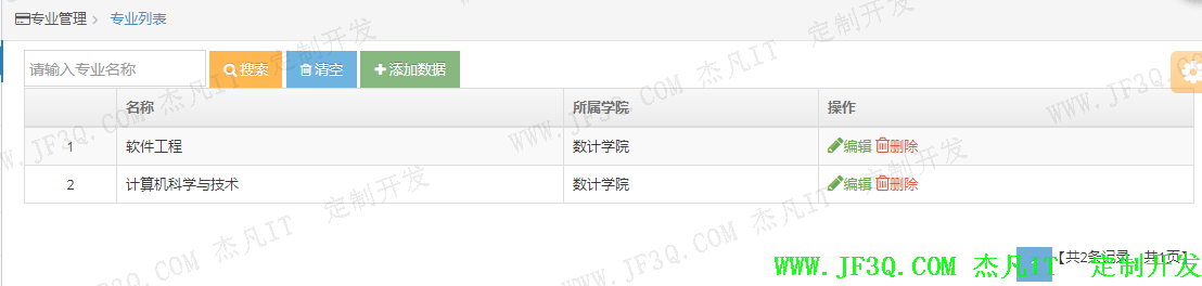 主要是对学院以下的专业(系)进行管理,部分实现效果图如下:
