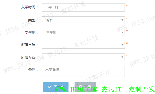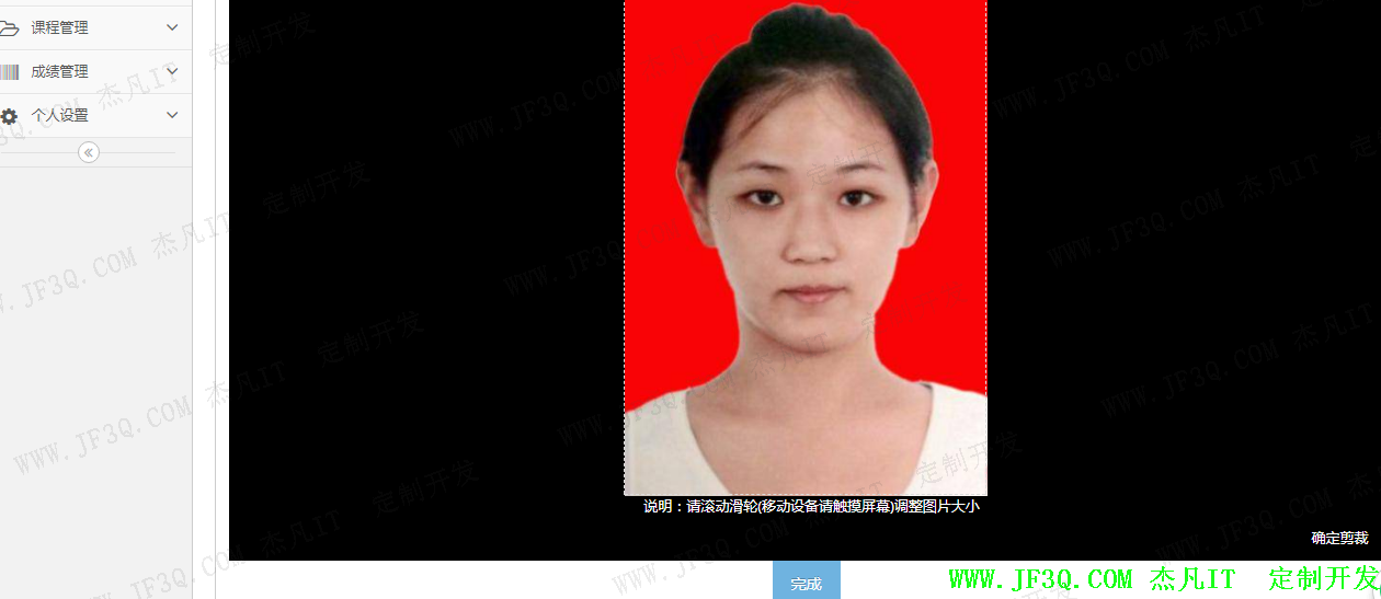 主要是对学生的基本信息录入,包含个人基本信息,学院专业信息,入学基本信息的录入,修改和查询,一寸电子照片剪裁,压缩,上传等功能。利用jquery.photoClip.js插件实现图片剪裁,部分实现效果图如下: