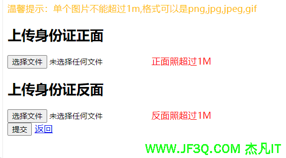 上传身份证正面和反面