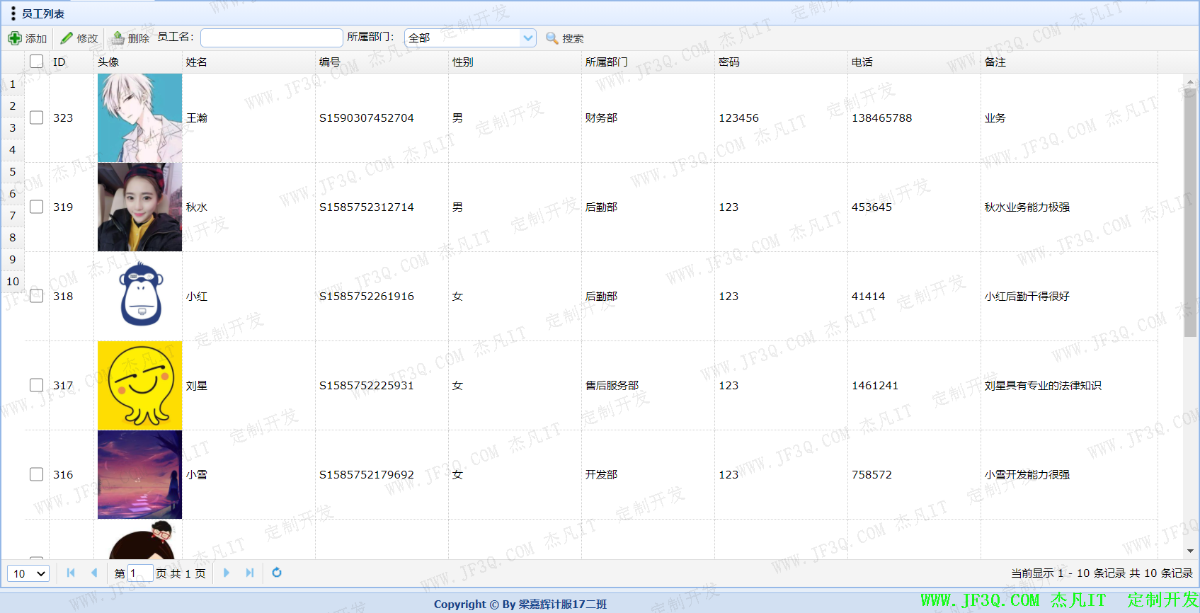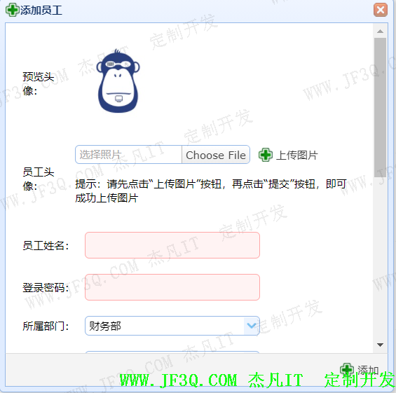 员工头像 员工姓名 登录密码 所属部门 员工性别 电话 备注 | 图片 除特殊字符外 6-14位 汉字 汉字 11位 除特殊字符外 | 1 2 3 4 5 6 7 | 字符 无效字符或为空 密码长度<6位 密码长度>14位 无效字符或为空 无效字符或为空 长度<11位 长度>11位 无效字符或为空 | 8 9 10 11 12 13 14 15 16 |