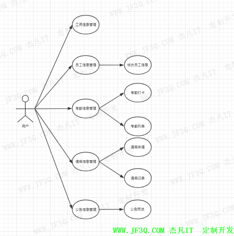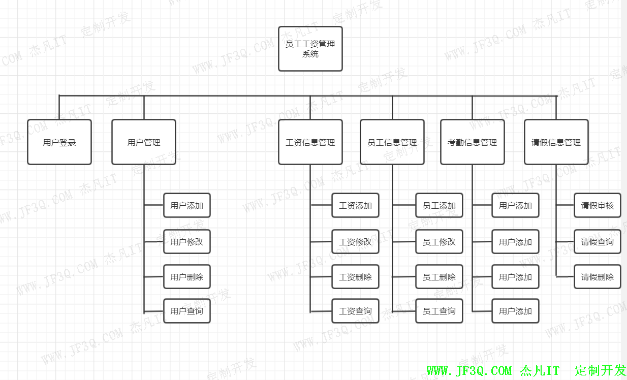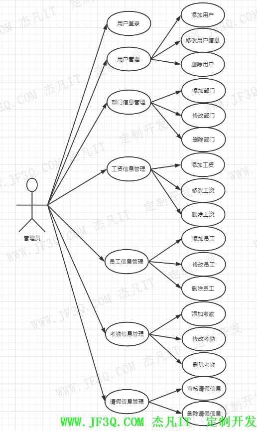 每个模块有更细致的划分[7]。主要分为管理员管理和员工管理两个主要模块。