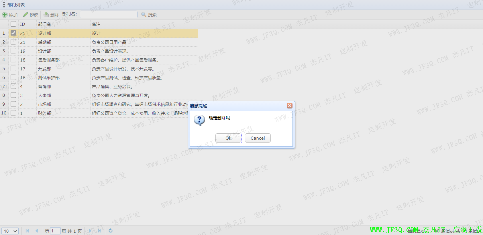ret.put(“Msg”,“部门删除成功!”);