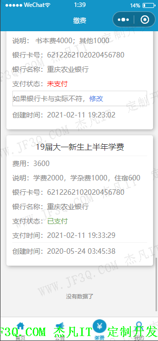 学生可以通过小程序随时随地查询个人信息、修改个人密码,还可以通过小程序解决饭卡支付和学费缴纳,新生入学服务小程序主要依赖于微信平台的验证和监督机制认证,抵制了仿冒网络钓鱼小程序,保证了学生数据的信息安全性,大大减少了维护信息安全的成本,让恶意攻击和变相数据不再发生。学生还可以通过小程序了解各个学院的教师风采和生源分布情况。更重要的是,学校发布的紧急公告和重要通知可以直接发送给每个学生,无需费力和教师口口相传便能覆盖整个校园,显著提高了迎新工作的效率和质量。总而言之,新生入学服务小程序将生活,娱乐,旅行和学习等服务功能数字化、智能化,增加了用户的粘性。