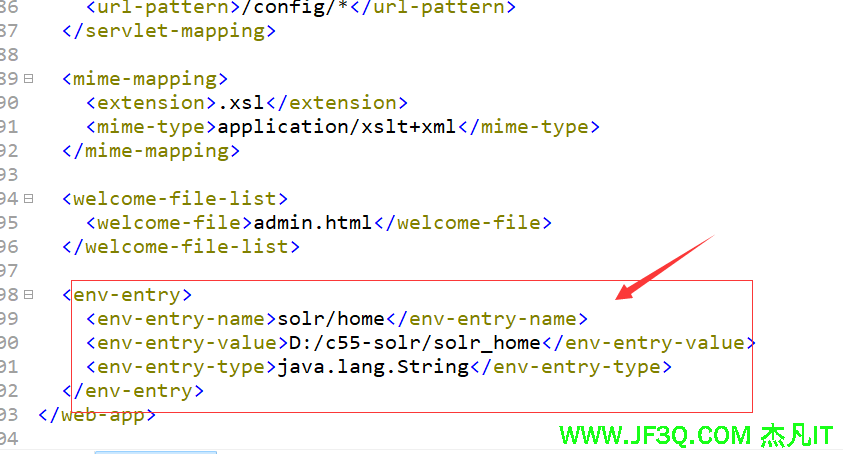<env-entry> <env-entry-name>solr/home</env-entry-name> <env-entry-value>D:/c55-solr/solr_home</env-entry-value> <env-entry-type>java.lang.String</env-entry-type> </env-entry>