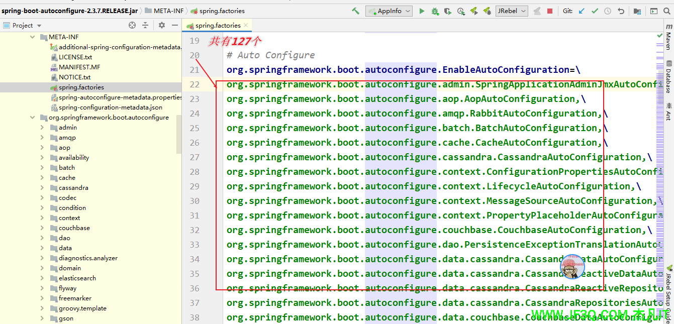 127:默认提供了127个自动配置类作为候选