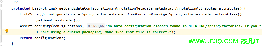 在getCandidateConfigurations方法中调用SpringFactoriesLoader的静态方法loadFactoryNames。