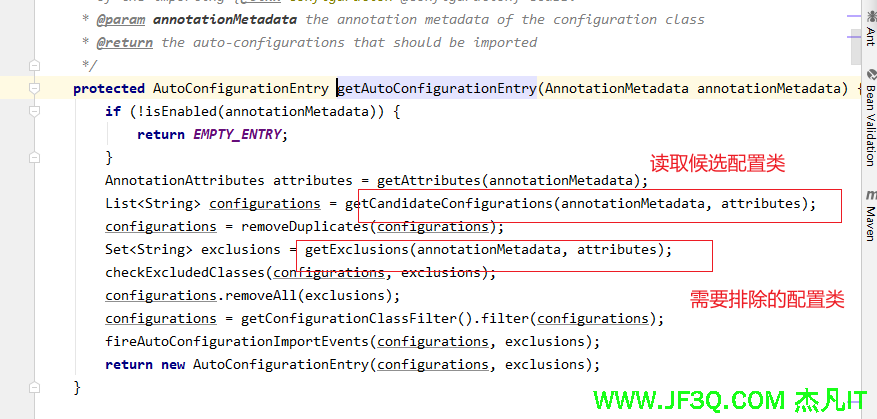 在getAutoConfigurationEntry方法中调用getCandidateConfigurations来读取候选配置类,