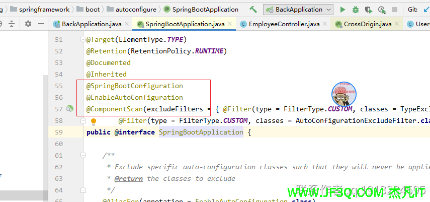 @SpringBootConfiguration:表示springboot启动类是一个配置类