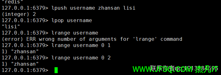 lpush(左侧插入),lpop(左侧删除),rpush(右侧插入),rpop(右侧删除)命令用于操作list类型的key