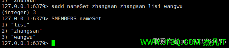 元素无序不重复的集合,添加元素用sadd,删除用srem,查看集合中所有元素用smembers命令。
