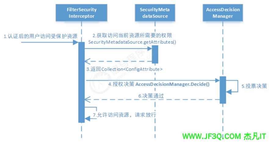 FilterSecurityInterceptor 是用于保护web资源的,使用AccessDecisionManager对当前用户进行授权访问,前面已经详细介绍过了;