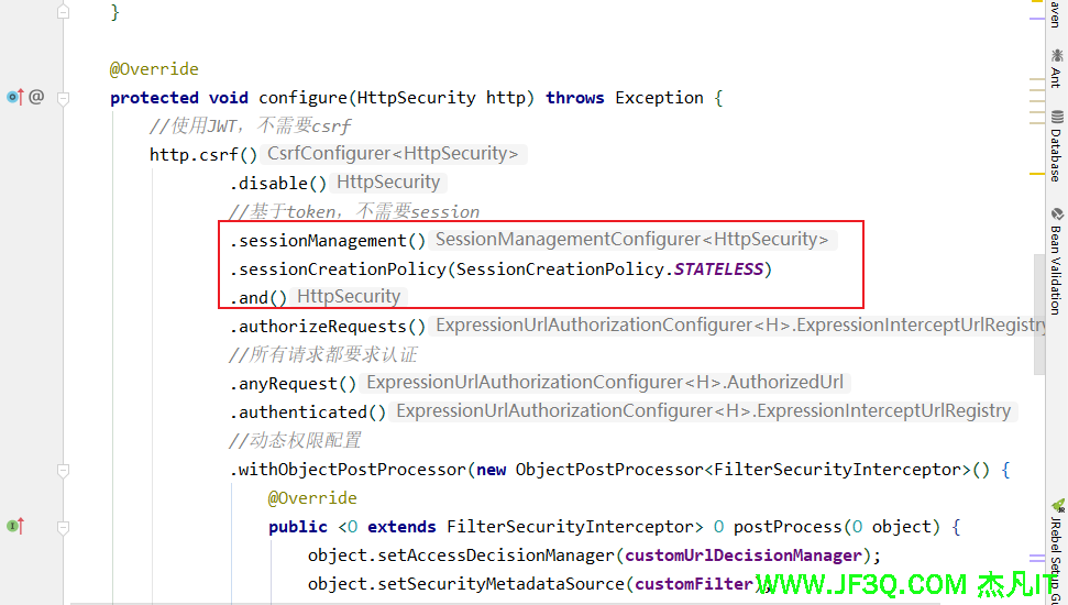 该方法通常配合boolean supports(Class<?> clazz)一起使用,先使用boolean supports(Class<?> clazz)确保安全对象能被当前SecurityMetadataSource支持,然后再调用该方法。(getAttributes方法返回本次访问需要的权限,可以有多个权限。在上面的实现中如果没有匹配的url直接返回null,也就是没有配置权限的url默认都为白名单,想要换成默认是黑名单只要修改这里即可。)