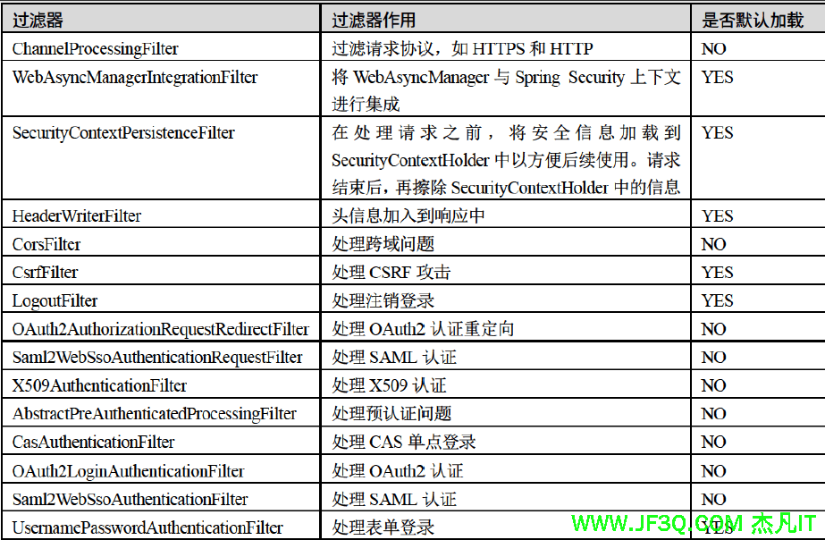 下面介绍过滤器链中主要的几个过滤器及其作用: