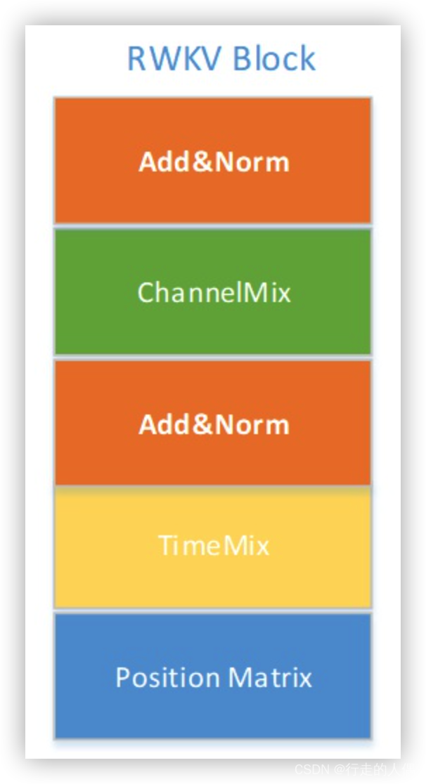而RWKV就是针对AFT不能训练长文本的特点,进行了改进,主要引入了Position Matrix、Time-shit、TimeMix和ChannelMix 等结构,相较于原始的GPT结构,RWKV将self-attention替换为Position Encoding和TimeMix,将FFN替换为ChannelMix。
