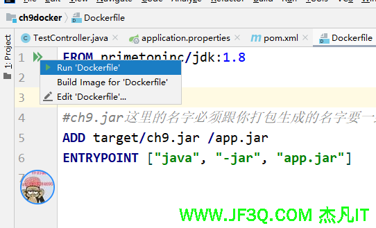 FROM primetoninc/jdk:1.8 EXPOSE 81 VOLUME /tmp #ch9.jar这里的名字必须跟你打包生成的名字要一致 ADD target/ch9.jar /app.jar ENTRYPOINT ["java", "-jar", "app.jar"]