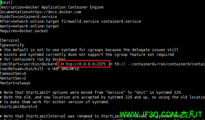 - 编辑docker.service文件,添加-H tcp://0.0.0.0:2375参数