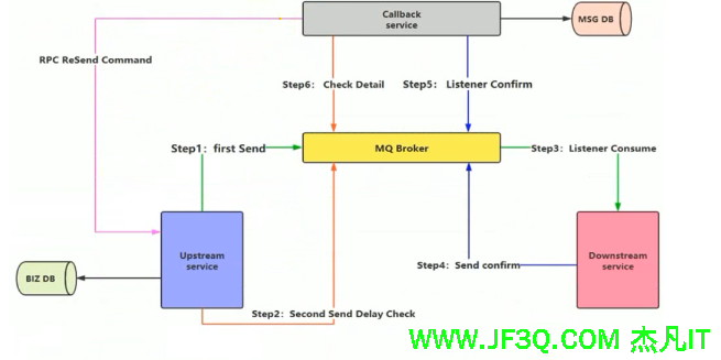 - 方式二:消息延迟投递,做二次确认,回调检查