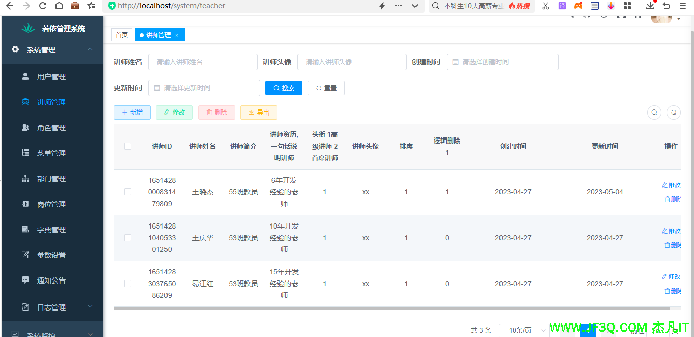 可以用Navicat在若依的数据库里建一个表。以讲师管理为例