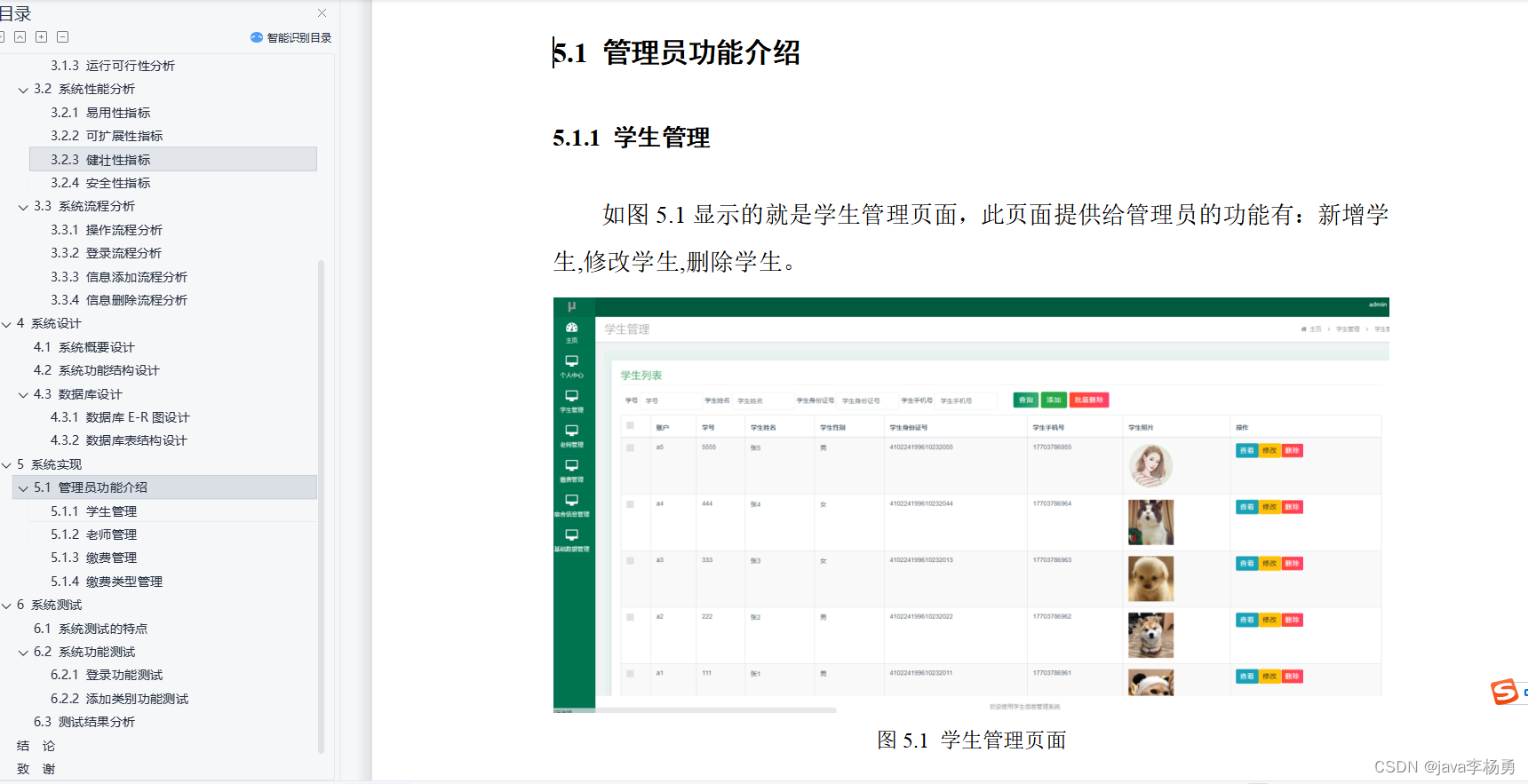 如图5.1显示的就是学生管理页面,此页面提供给管理员的功能有:新增学生,修改学生,删除学生。
